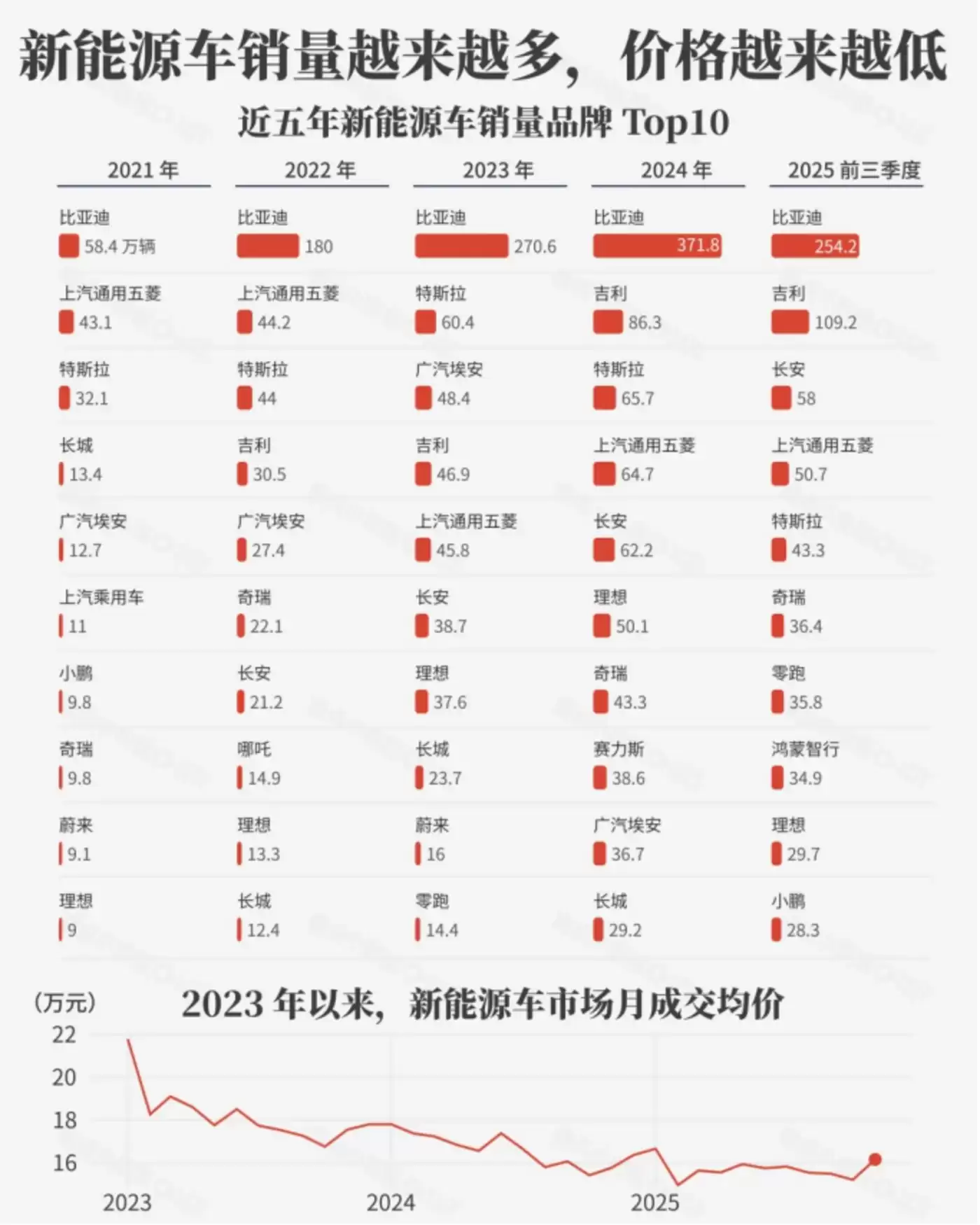 新能源汽车竞争激烈,反内卷虽然成为行业的共识,但价格战依然处于红温状态,新能源车均价已连续三年下滑。
