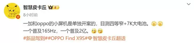 OPPO Find X9s或推15T内存,超大电池7000mAh续航方案曝光