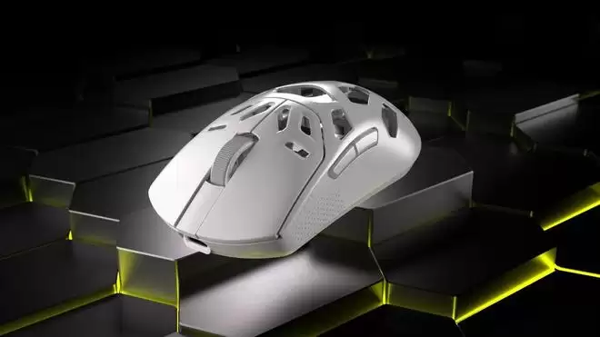 同系列的 SABRE v2 PRO Magnesium Alloy 走的是镁合金外壳路线。最新标重为 56g,同样支持 8,000Hz轮询率与三模连接,同时附带防滑贴与备用脚贴。如果说碳纤维版本更像“把材料与性能压到极限”,镁合金版本更像“在轻量化前提下,尽可能增强结构强度与触感。