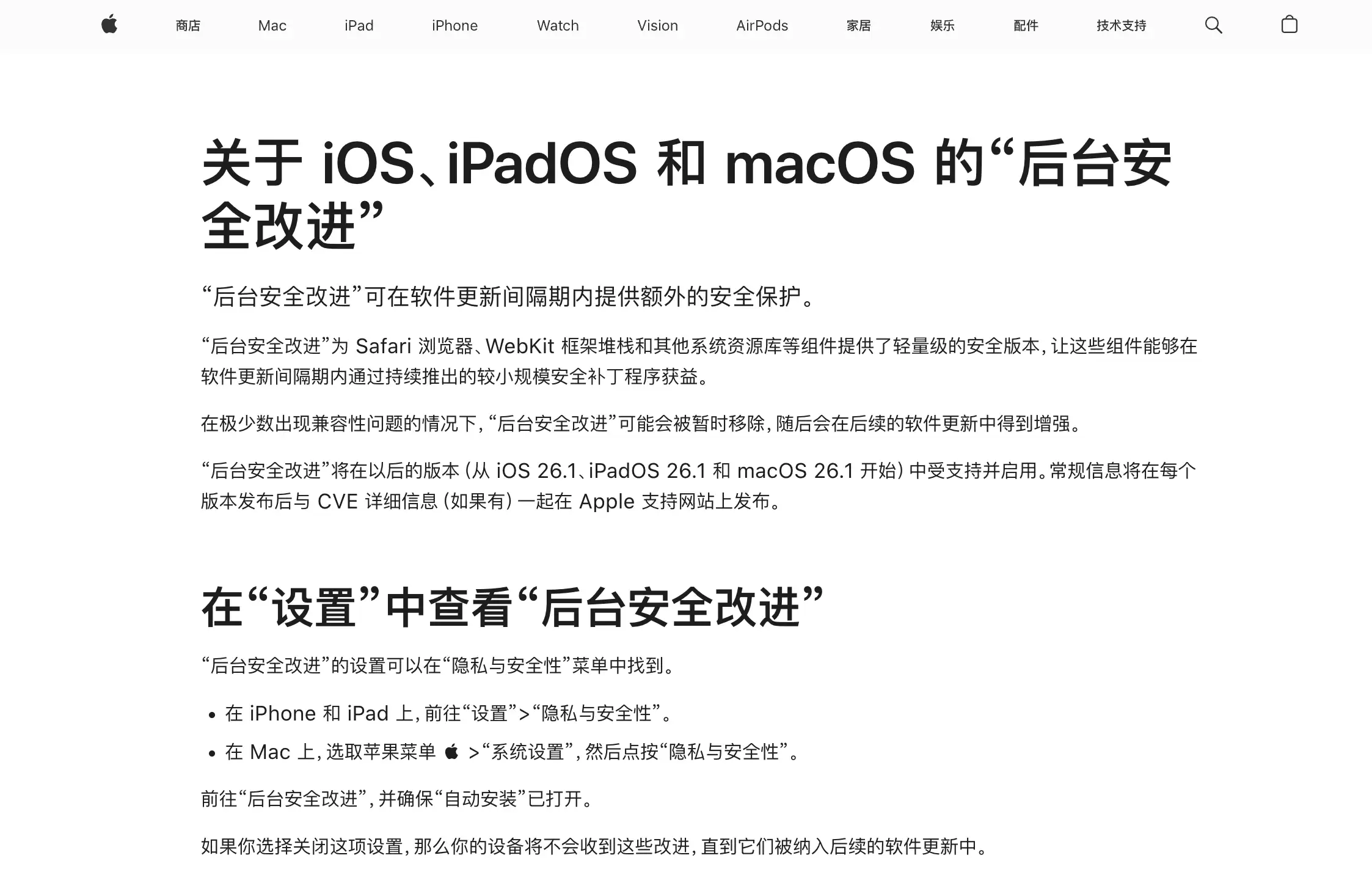 而“后台安全改进”机制的引入,使得苹果可以在不发布系统版本的情况下,直接推送针对性的安全补丁,用更快的速度修复漏洞、降低风险。