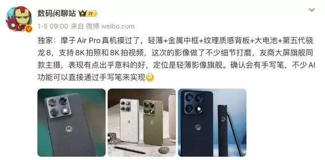 此前,博主@数码闲聊站 也在爆料中透露过,联想moto X70 Air Pro真机摸过了,轻薄+金属中框+纹理质感背板+大电池+第五代骁龙8,支持8K拍照和8K拍视频,这次的影像做了不少细节打磨,友商大屏旗舰同款主摄,表现有点出乎意料的好,定位是轻薄影像旗舰。确认会有手写笔,不少AI功能可以直接通过手写笔来实现。