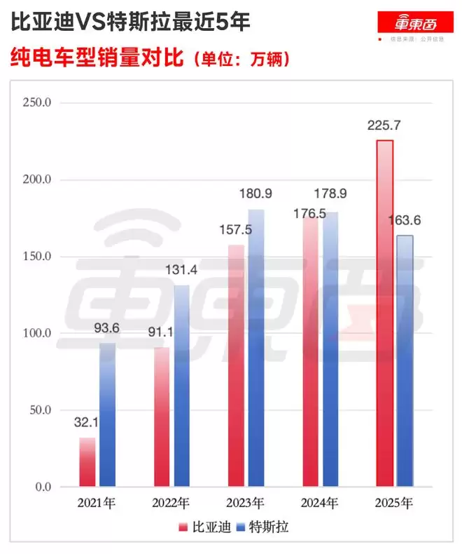 2025年比亚迪纯电销量超越特斯拉,是现代汽车史上一个意义重大的历史性坐标。