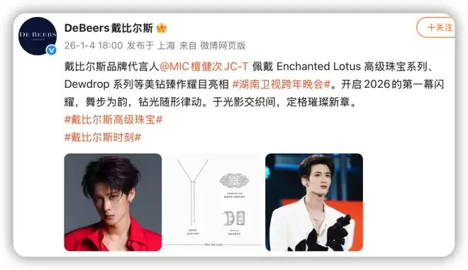 那么问题来了,檀健次是DeBeers戴比尔斯代言人。 DeBeers到现在还没把他从官博删了真是太大度了。