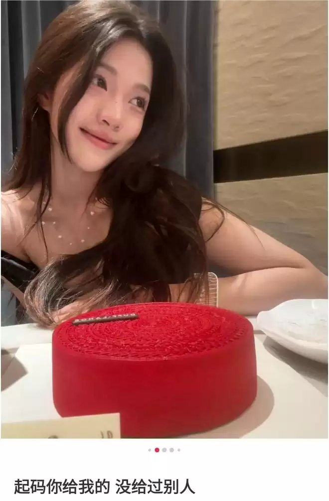 她也在小红书发了,文案为: “你要是知道这是谁送我的,你也会觉得我命好。”“起码你给我的,没给过别人。”