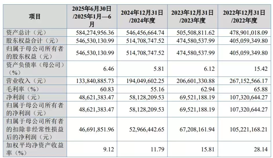 从财务数据来看,文峰光电在报告期内的业绩经历了一定的起伏。具体来说,公司2023年实现营业收入为2.67亿元,净利润为1.07亿元;而到了2024年,受下游客户项目进展阶段性调整等因素影响,其营收下降至2.07亿元,净利润也降至6952.12万元,同比下滑幅度分别达22.67%和35.22%。进入2025年上半年,公司经营面临调整,营业收入和净利润分别进一步下滑至1.94亿元和5812.82万元,同比降幅为6.08%和16.39%。