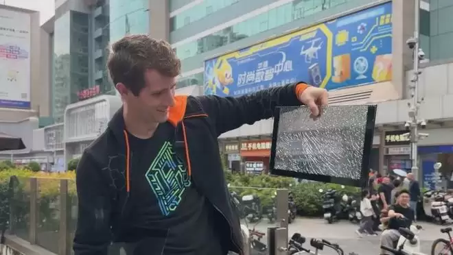 老莱在炫技的同时也不慎“翻车”,一个失手摔碎了机箱玻璃