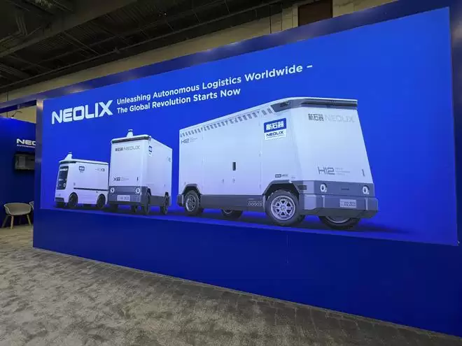 展会上,新石器展示了全系列RoboVan产品矩阵,X3、X6、H12等明星产品悉数亮相,吸引众多海外观众的关注。其中,全新发布的新石器X1尤为引人瞩目。这款产品身形精巧,具备出色的室内外穿梭能力,能够自主出入人行道、写字楼大堂,甚至能独立搭乘电梯。