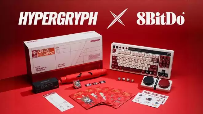 IT之家1月8日资讯,鹰角网络(HYPERGRYPH)与八位堂(8BitDo)今日联手发布了一款以经典 Retro 87 机械键盘为原型打造的新春主题周边套装。该套装将于1月9日20:00正式上架销售,定价为499元人民币。