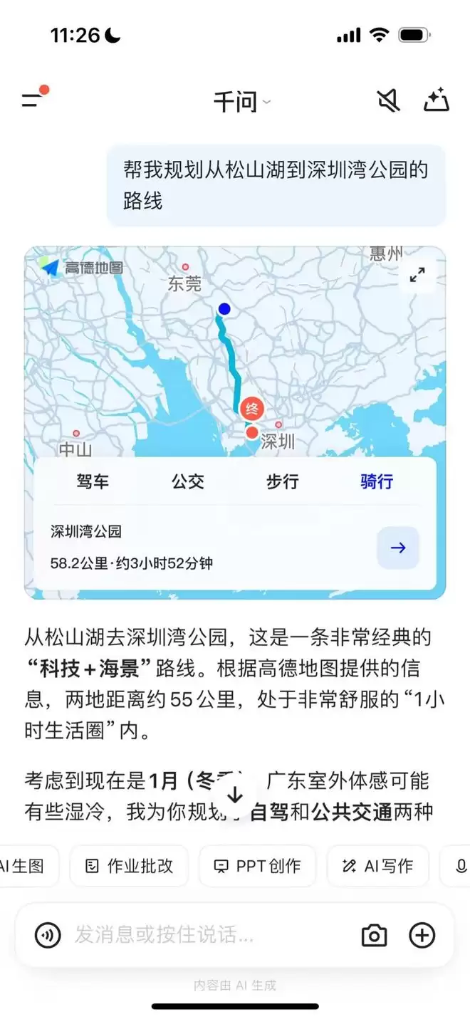 千问对话中可直接跳转高德APP