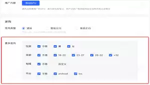 - 人口属性:您可以根据年龄、性别、地域等维度来筛选目标人群。例如,推广一款针对年轻女性的美妆产品时,可将年龄范围设置在18至35岁,地域则优先选择一、二线城市。