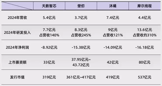 如今,四家公司的资本市场“座次”也已显现:壁仞、天数智芯市值分别为900亿、400亿规模,沐曦、摩尔线程在科创板则高达3000亿规模。但上市不是终点,只是第一阶段资本市场争夺战的阶段性胜利和座次排名。