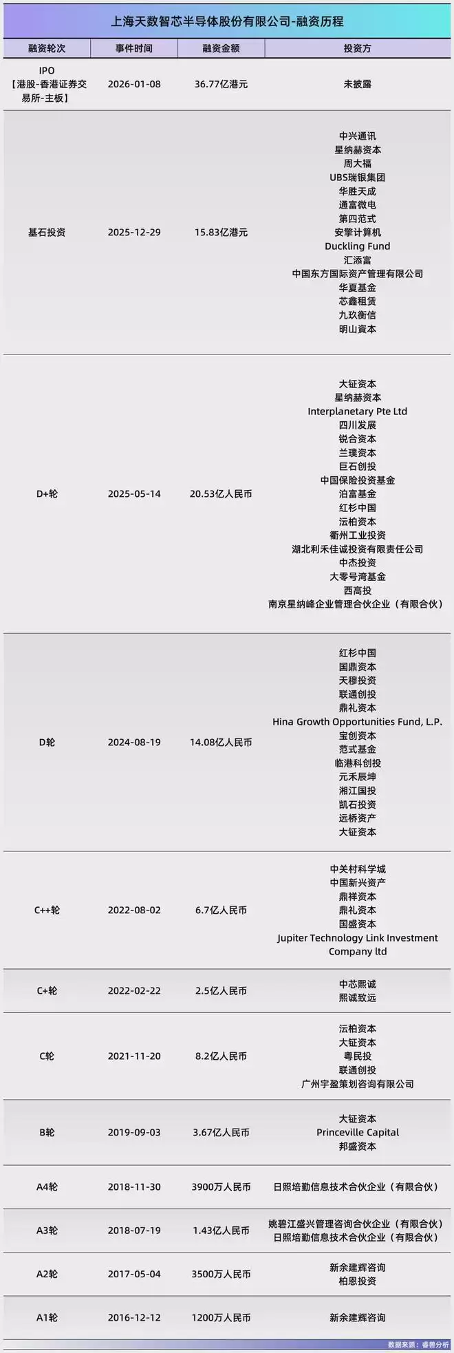 在天数智芯发展至C轮和D轮之际,有了更多知名投资方进入,例如上海国资国盛资本在C轮进入,红杉中国和元禾控股则在D轮进入。