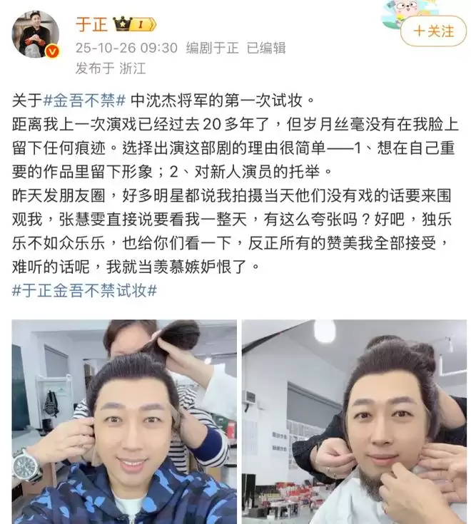 和以往作品不同的是,在《金吾不禁》中于正将亲自上阵客串出演将军沈杰一角。