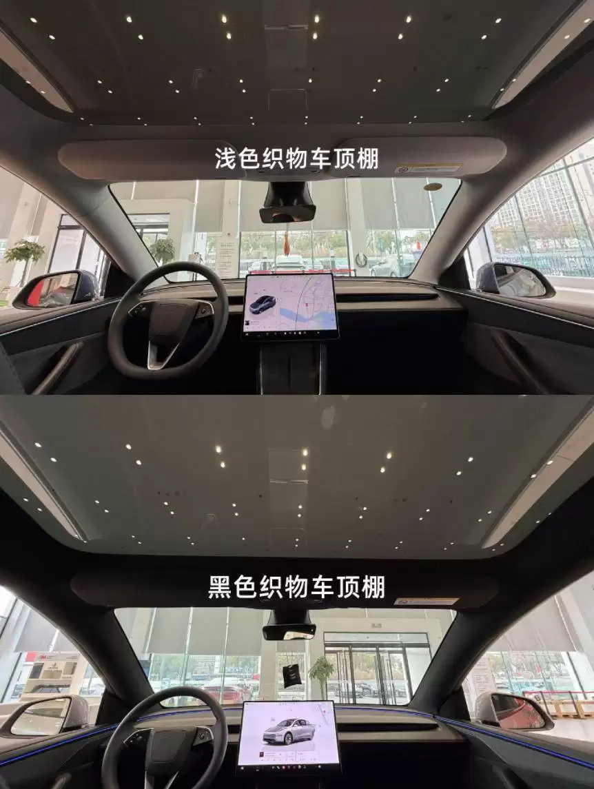 在这次改款中,顶篷材质与颜色的调整成为用户热议的焦点。2025款Model Y仅提供浅灰色织物顶篷,虽然能营造出通透的车内空间感,但日常使用中容易显灰显脏,清洁维护成本较高。而2026款新增的黑色顶篷通过实车对比显示,其深色设计能有效隐藏灰尘与使用痕迹,显著提升了耐脏性。不少家庭用户反馈:"深色顶篷更贴合日常用车场景,减少了频繁清洁的麻烦。"