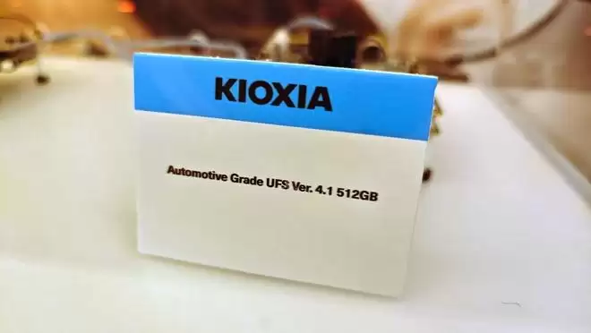 最后我们再来关注一下汽车领域。当智能汽车逐渐变成 “四个轮子上的智能终端”,车载存储的需求早已跳出 “存音乐、存导航” 的范畴,要扛住 ADAS 数据记录、多屏 4K 娱乐、车联网实时交互的高频压力。在铠侠的展区里,两款汽车级 UFS 产品成了 “流量担当”——UFS Ver3.1 与 UFS Ver4.1,其中后者更是本次展会的焦点。从展区的标识牌能清晰看到,这款 UFS Ver4.1 容量达 512GB,“Automotive Grade” 的标注背后,是它通过了 AEC-Q100 汽车电子可靠性认证,能硬抗 - 40℃到 105℃的极端温度,不管是北方寒冬的露天停车,还是南方盛夏的车内暴晒,都能稳定运行。