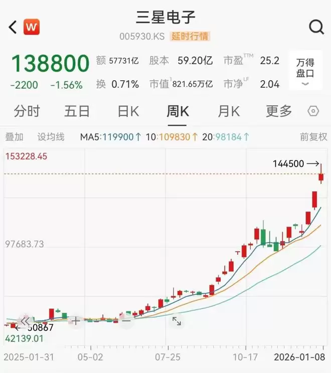 值得注意的是,这也是三星电子成立以来,单季度营业利润首次突破20万亿韩元里程碑。受存储芯片需求的长期利好拉动,三星股价半年来累计上涨超128%。三星计划于1月29日公布详细业绩。