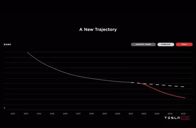 马斯克心满意足的电池降本曲线是红色那条