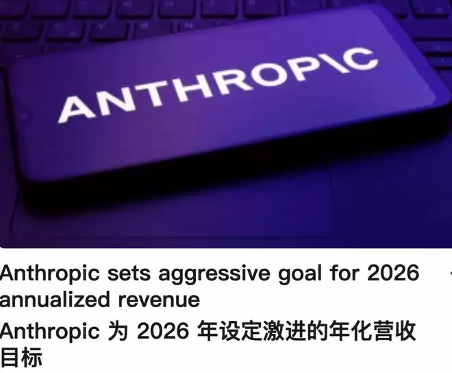 根据路透社报道,Anthropic已将2026年的营收目标定在20–26亿美元区间。