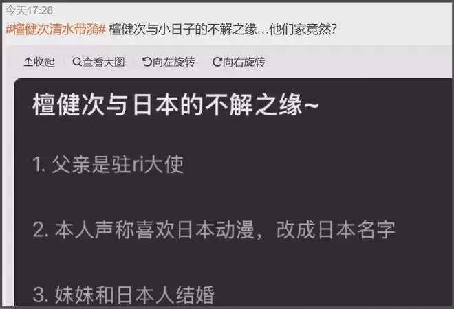 还有爆料称,檀健次的妹妹嫁给了日本人——父母辈给儿子改日本名,子女辈同样对日本充满感情,网友都忍不住质疑他们全家亲日。