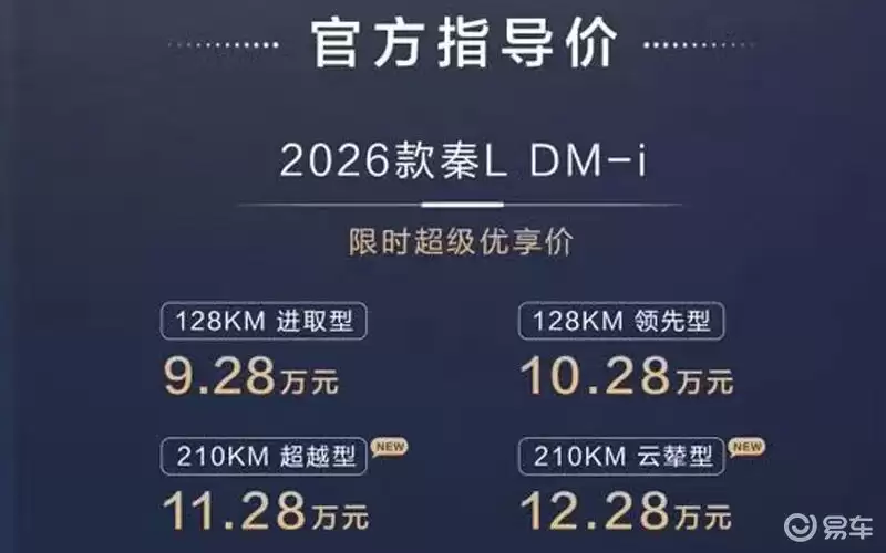 2026款秦L DM-i上市:9.28万起长续航,家庭购车优选