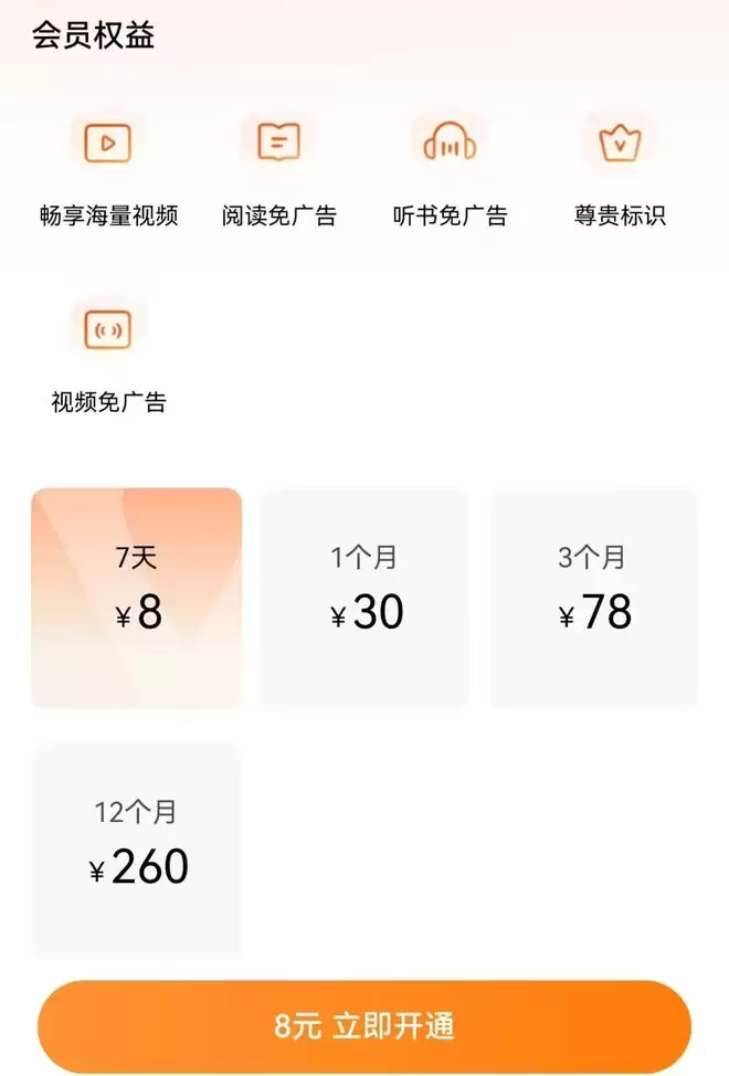 红果其实也在尝试会员付费的变现途径,推出了7天卡、月卡、季卡、年卡等套餐,价格从8元至260元不等。虽然比之前“按集付费”的短剧划算不少,但问题在于红果长期主打的“免费”金字招牌之下,这一会员权益能有多少吸引力,值得打上一个问号。