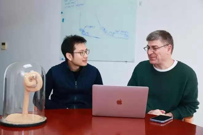 杰睿研究员(右)与张余研究员(左)在讨论工作