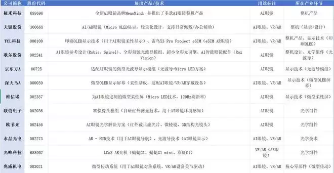 在光学感知与成像组件方面,联创电子的3D摄像头模组(自研红外滤光技术)赋能环境感知,欧菲光推出光学解决方案(含红外截止滤光片、3D结构光镜头),强化交互精度;光峰科技则以LCoS AR光机(蜻蜓系列)为AR眼镜提供高亮度显示核心。