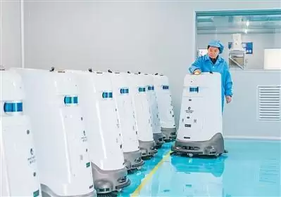 山西省运城市临猗县的一家智能科技公司生产车间内,工人在检测智能机器人产品性能。常 奇摄(人民视觉)