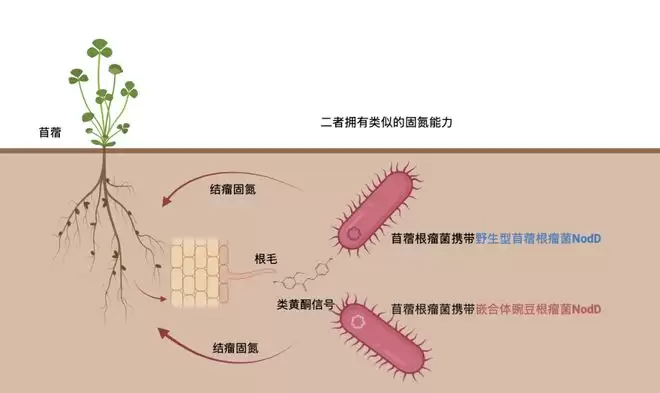 嵌合体NodD能够互补苜蓿根瘤菌NodD突变体,恢复其在苜蓿上的固氮结瘤能力。