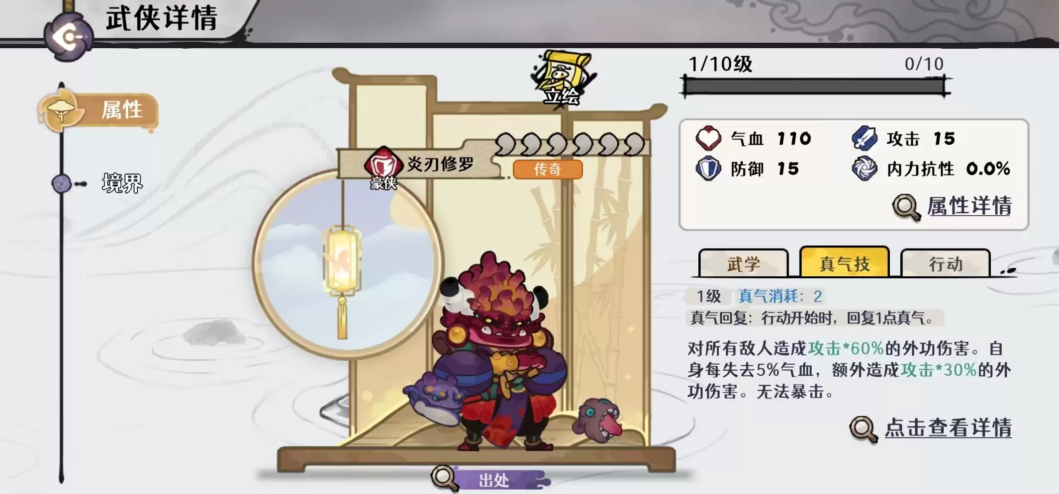 第三位置推荐豪侠炎刃修罗,仅需一命即可生效:释放技能时,为全体敌人施加一层灼烧,同时为己方全体提供持续两回合的50%防御护甲。在神兵搭配方面,优先选择【撤销】,其次可选赤痕、西域、非典或绝情。本体系对神兵兼容性较强,重点在于匹配灼烧、连击、回怒等关键回路——例如失衡可触发灼烧牌回路,西域飞连支持连续打出3/4/5级侠卡并高效回复怒气。