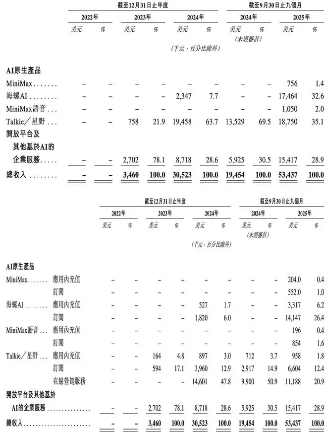 按产品及进一步按变现方式划分,MiniMax的收入明细如下: