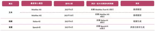 该公司以MiniMax M2、Hailuo-02和Speech-02为核心的自研大模型组合,具备长上下文处理能力,可理解、生成并融合文本、视觉、音频等多种模态。