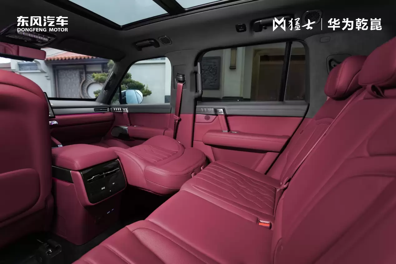 这份独特的诗意与年味,更为整个座舱注入了满满的豪华质感。猛士M817内饰以横平竖直线条搭配硬朗金属材质,中轴对称的布局延伸至车门把手,硬派基调中尽显规整大气;座舱91.2%的软质包覆,搭配顶棚与后备厢的高档绒质面料,无论是日常通勤的独处时光,还是新春团圆的阖家出行,触目所及、指尖所触皆是细腻与尊崇。