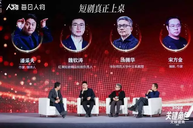 还有很多人察觉到了短剧的变化。盛典下半场,红果短剧精品短剧负责人魏钦涛,华东师范大学中文系教授、《中文自修》主编汤拥华,编剧、作家宋方金,以及作家、媒体人潘采夫坐在一起,聊了聊他们眼里的短剧。