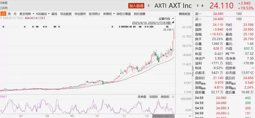 当地时间周三,美股磷化铟(InP)概念股AXT Inc股价一度飙升近20%。