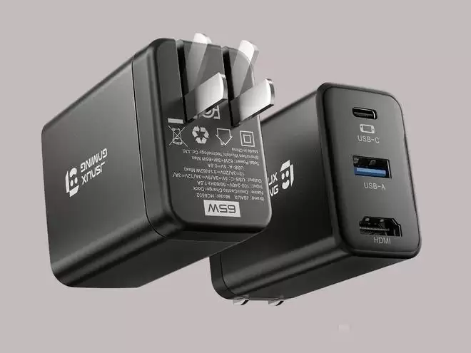 从设计上看,OmniCentro Charger Dock采用了类似Genki Covert Dock的思路,将电源适配器与电视底座功能合二为一。该设备配备了一个支持65W功率的USB-C充电口、一个用于连接外设的USB-A接口以及一个HDMI视频输出接口。