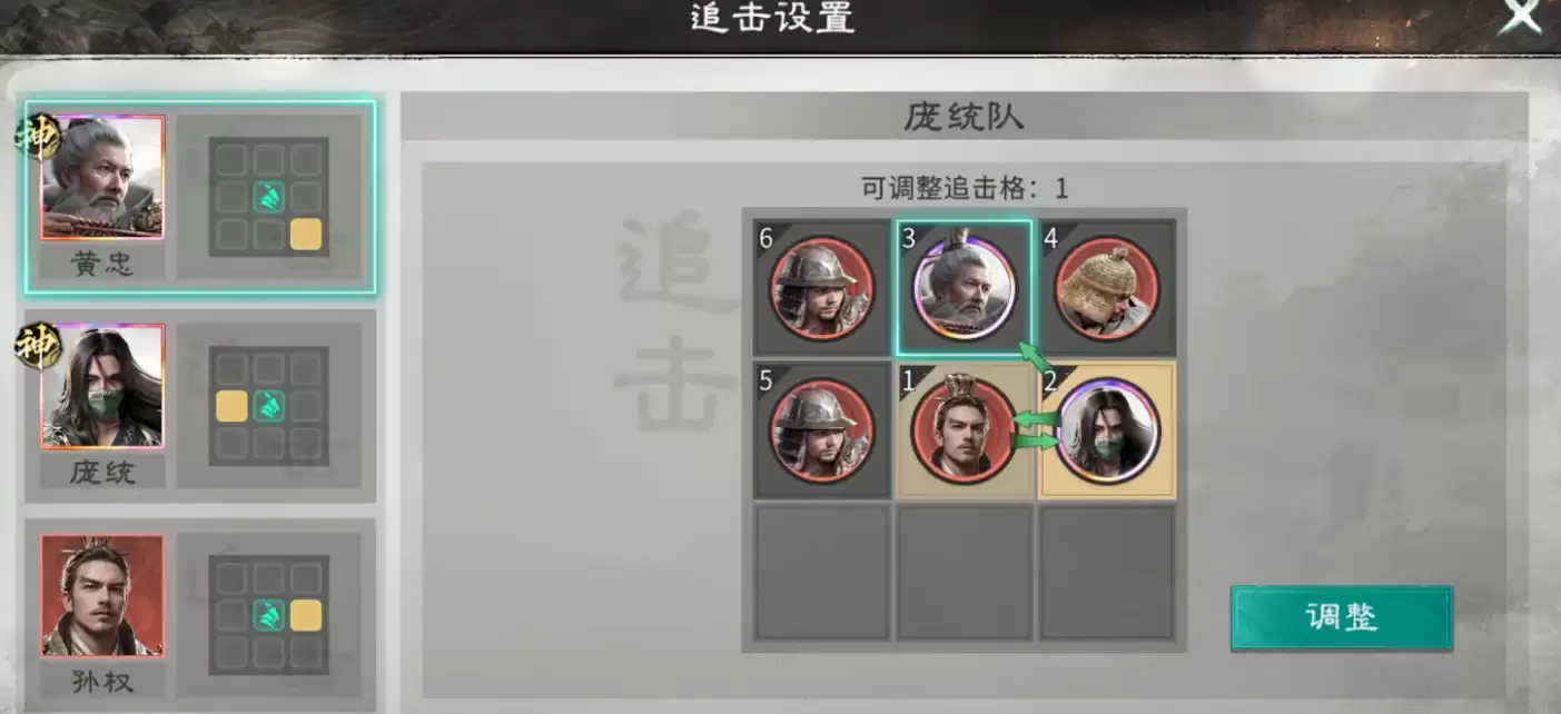 在布阵层面,推荐将赵云与庞统分别置于刘备所生成的两个追击格内,确保其每回合均可获得额外行动机会。前排由赵云承担突进任务,利用高机动性切入敌方阵型薄弱区域;庞统则部署于后排安全位置,专注释放范围技能清理杂兵或压制敌方后排核心,在保证输出效率的同时兼顾自身生存容错。