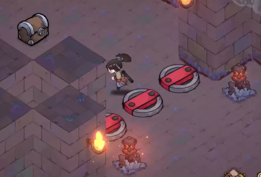游戏初始场景为新手引导区,主要道路呈线性布局。沿着左侧小径持续前进,抵达巨型岩体地标后,需切换至细致搜索模式:围绕岩石基座缓慢移动视角,在其西北侧岩缝与藤蔓交织处存在视觉盲区,此处即为首个可交互宝箱埋藏点。开启后掉落物品完全随机,包含基础矿镐、临时增益卷轴或稀有图纸碎片。