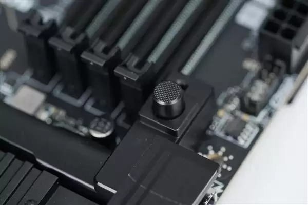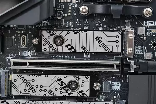 更值得一提的是,所有M.2插槽均标配免工具安装的冰霜铠甲散热片,能有效压制NVMe固态硬盘温度。