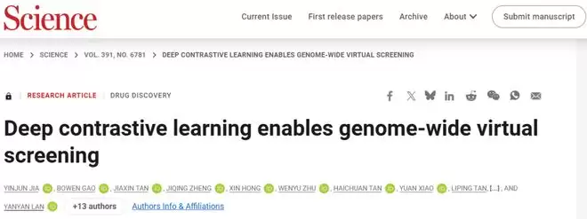 2026 年清华大学第一篇 Science 论文花落清华大学智能科学讲席教授、智能产业研究院(AIR)院长张亚勤院士团队,该学院的兰艳艳教授团队和合作者研发出一款名为 DrugCLIP 的 AI 工具,能以前所未有的速度和准确率,为成千上万个人类蛋白质找到潜在的药物钥匙。
