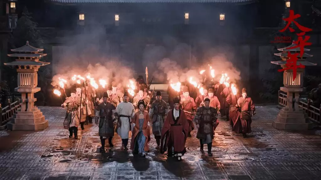 在视觉呈现上,《太平年》采用8K超高清技术摄制。主创团队介绍,该剧的制作耗时多年,潜心考据了五代十国至宋初的历史风貌,累计搭建超过550个风格多样的场景,从烽烟四起的中原战场到参差翠幕的吴越宫苑,从烟火缭绕的市井街巷到巍峨磅薄的京师宫殿,全方位还原了千年前华夏大地的地理与人文景观。此外,剧组还为此设计了逾8000套精美服饰,在灯光、妆发、道具等细节上追求美学与匠心,精细呈现了五代时期的礼仪、服饰文化与生活器用,让“吴越风华”在屏幕上重生。《太平年》台前幕后有近4万人参与、场景总面积38000平方米。
