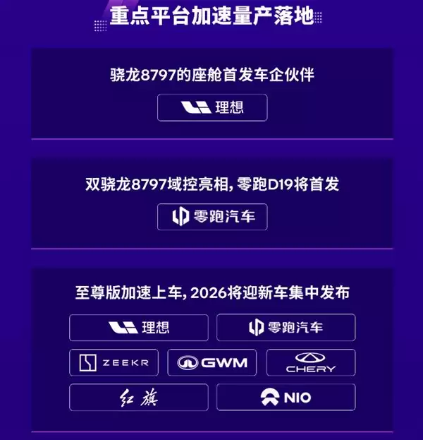 类似的实践正在中国车企中快速铺开,除了骁龙8797的座舱首发伙伴理想之外,零跑、极氪、长城汽车、奇瑞、红旗、蔚来等头部车企品牌,都规划在新一代车型中采用骁龙汽车平台至尊版,期待这些车型在年内的集中落地。