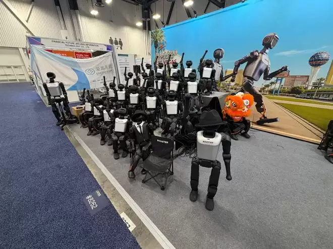 由数十台 Booster K1 组成的加速进化机器人矩阵,在 CES 2026 正展开幕日登台亮相,而这也成了今年参展企业中,人形机器人数量最多的展台。