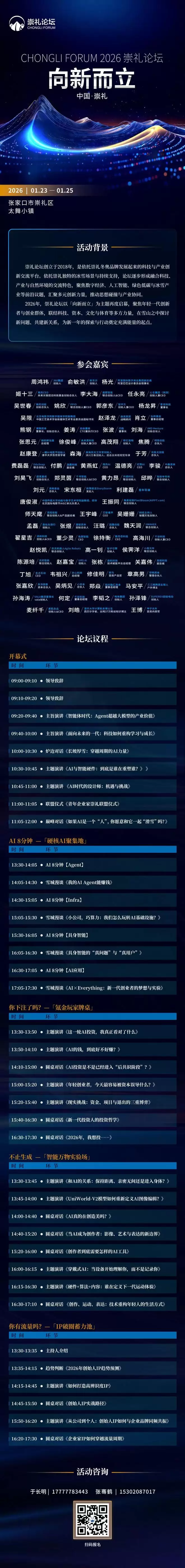 与此同时,开幕式现场将正式举办《青年企业家崇礼联盟仪式》。这标志着崇礼将不仅是一个年度相聚的地点,更将成为一个长期连接青年创业者、资本与产业资源的常设平台,为新一年的共同探索奠定清晰且充满能量的起点。