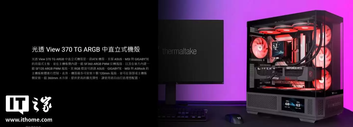 曜越于CES 2026展会期间发布了全新的View 370 TG ARGB中塔机箱,主要面向游戏玩家与主流用户。这款产品采用独特的“海景房”设计理念,让玩家能从多个角度清晰欣赏内部硬件。它提供黑色与白色两种配色可选,售价为3490新台币。