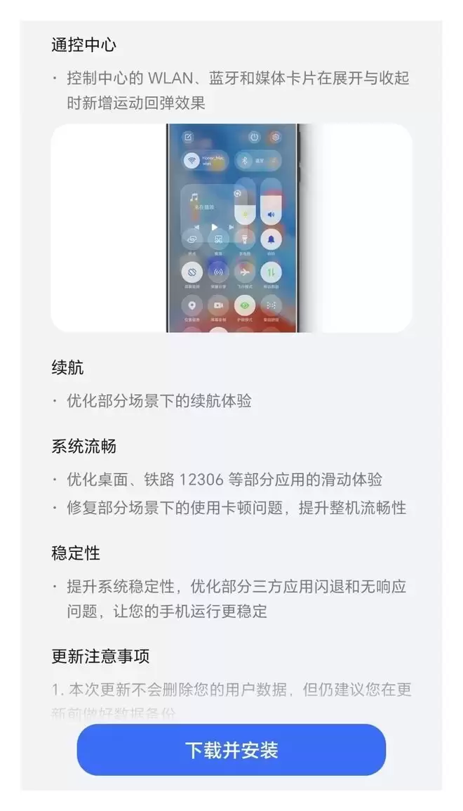 然后就是优化桌面、铁路12306等部分应用的滑动体验,修复部分场景下的使用卡顿问题,提升整机流畅性。