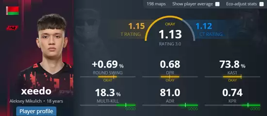 或许正是因为这样良好的状态,才让这位白俄罗斯小将被sh1ro所关注:“我和他在FACEIT上打过几局,我认为他是一位很有潜力的选手。”