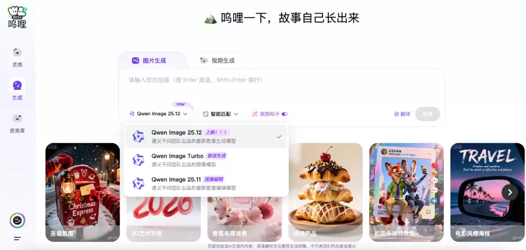 该平台的技术支撑,源于阿里巴巴旗下通义千问团队研发的系列图像模型。其中,最新发布的Qwen Image 25.12模型主打高精度图像生成,能够根据文本描述塑造出细节丰富的视觉内容;Qwen Image Turbo模型则专注于极速生成,充分满足用户对效率的极致追求;而Qwen Image 25.11模型提供了智能图像编辑功能,支持局部修改、风格迁移等精细化操作。这三款模型优势互补,覆盖了创意制作中的不同场景需求。