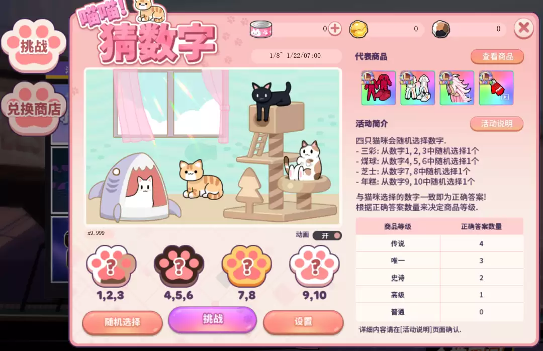 四只猫咪会随机选择数字。