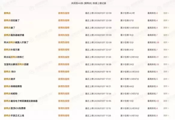 1月7日,由金山世游与虎牙联合发行的社交推理手游《鹅鸭杀》正式启动全平台公测。游戏上线仅24小时,新增注册用户便突破了500万大关,并迅速登顶iOS免费榜。与此同时,在微博、快手、B站、抖音、小红书等主流社交平台,相关话题更是收获了超过30个热搜,成为2026年开年首个实现“破圈”的现象级爆款游戏。